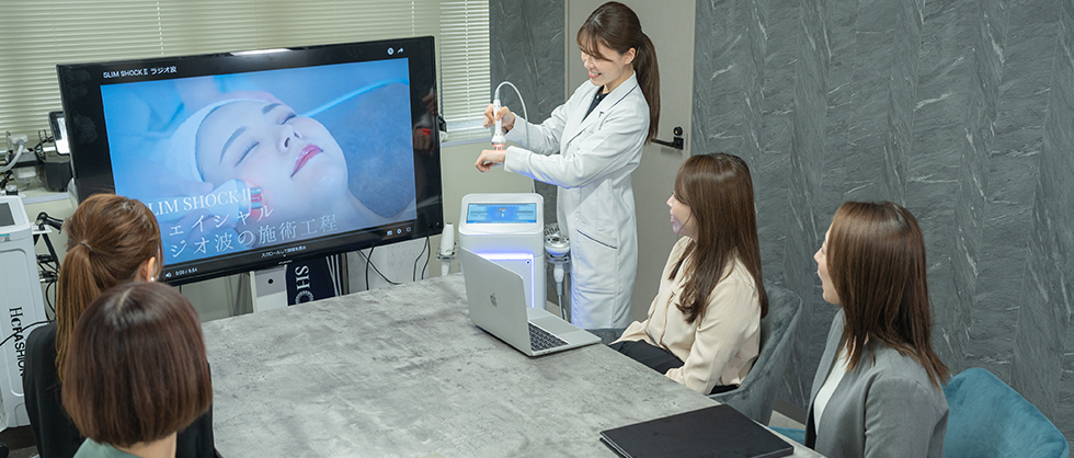 オーナー様が安心してサロンを経営できるように、機器や理論の講習、スタッフ様の技術向上のサポート